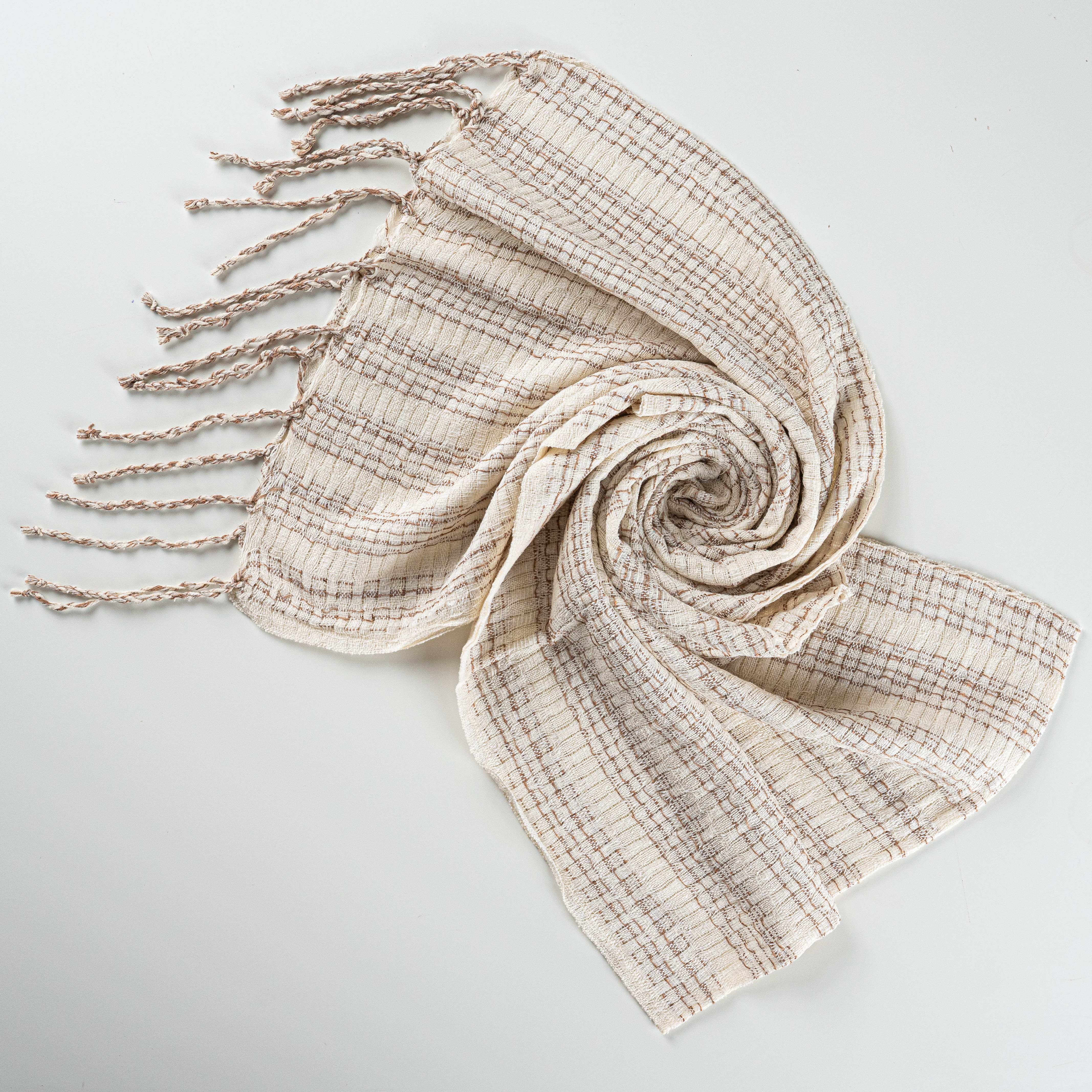 Hatay’ın ustalıkla işlenen geleneksel el tezgahlarında üretilen bu krem çizgili şal, %100 saf ipekten dokunmuştur. Doğal ipekten gelen yumuşak dokusu ve zarif çizgili deseni ile her mevsimde şıklığınıza zarif bir dokunuş katar. Krem renginin sıcak ve doğal tonları, günlük kombinlerinizi modern ve sade bir şıklıkla tamamlar. El işçiliği ile özenle hazırlanan püskül detayları ise bu şalı benzersiz bir aksesuara dönüştürüyor. Hem özel günlerde hem de günlük kullanımlarda rahatlıkla tercih edilebilecek bu şal, Hatay'ın zengin dokuma mirasını modern çizgilerle bir araya getiriyor.