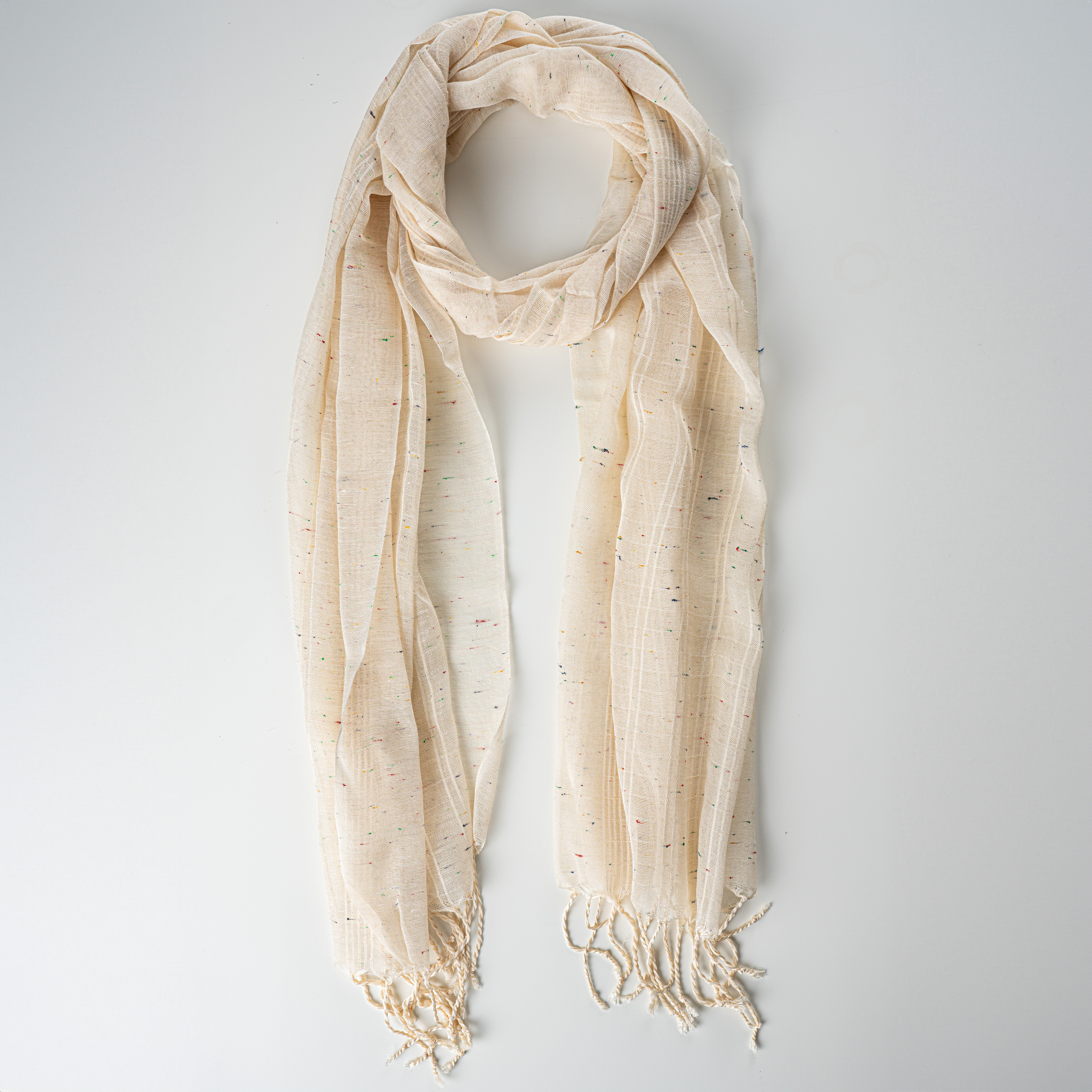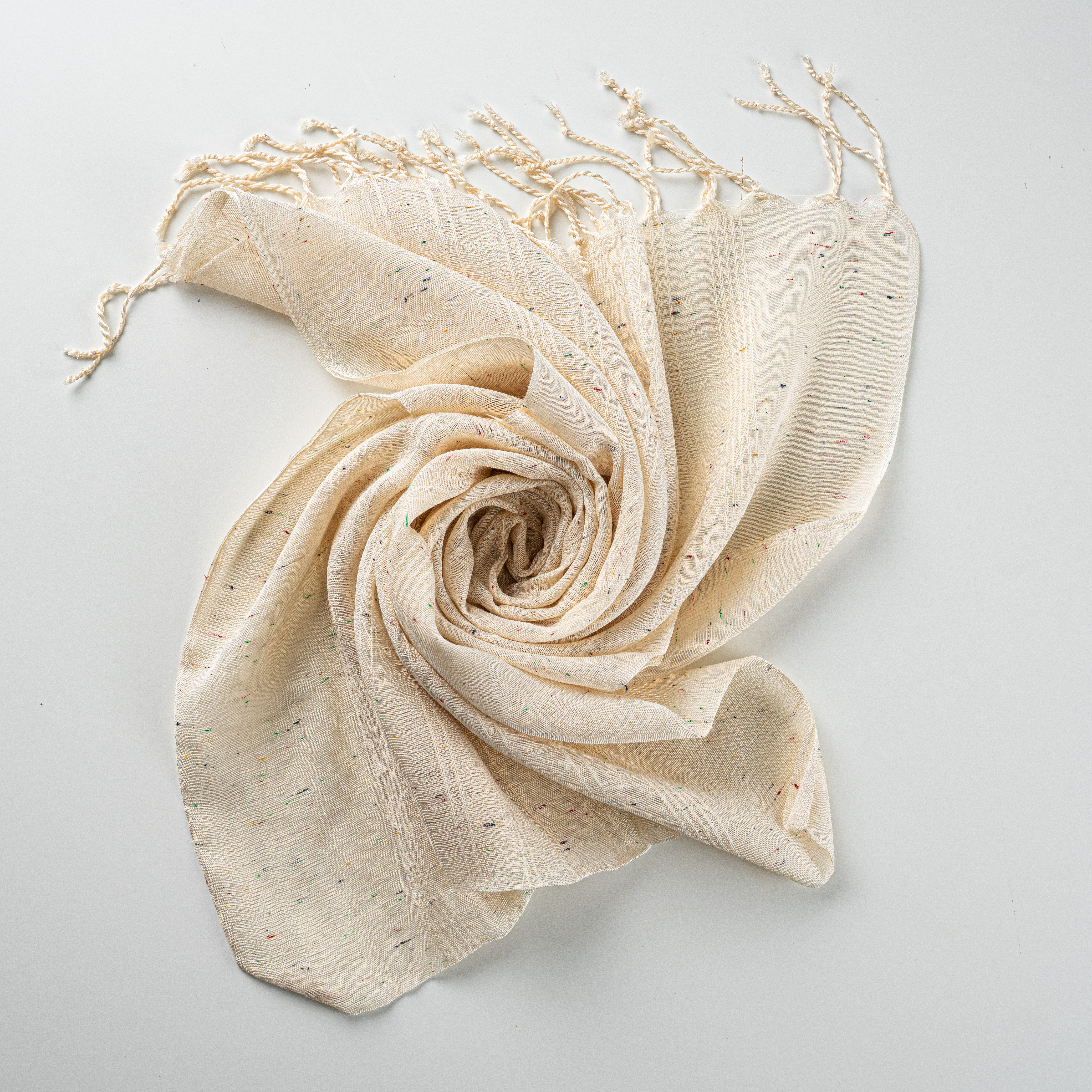 Hatay'ın el tezgahlarında ince işçilikle dokunan bu krem rengi şal, %100 saf ipekten üretilmiştir. Zarif ve hafif dokusuyla cildinizde yumuşak bir his bırakırken, doğal ipeğin zarafetiyle her türlü kombininizi şık bir şekilde tamamlar. Krem rengi, minimalist ve klasik tarzlara uyum sağlarken, her mevsim rahatlıkla kullanabileceğiniz çok yönlü bir aksesuardır. Bu şal, Hatay'ın köklü dokuma geleneklerinin modern bir yansıması olup, el işçiliğiyle hazırlanan püsküller ile tamamlanmıştır. Hem özel günlerde hem de günlük kullanımda tercih edilebilecek, stilinizi ön plana çıkaracak bir parça.