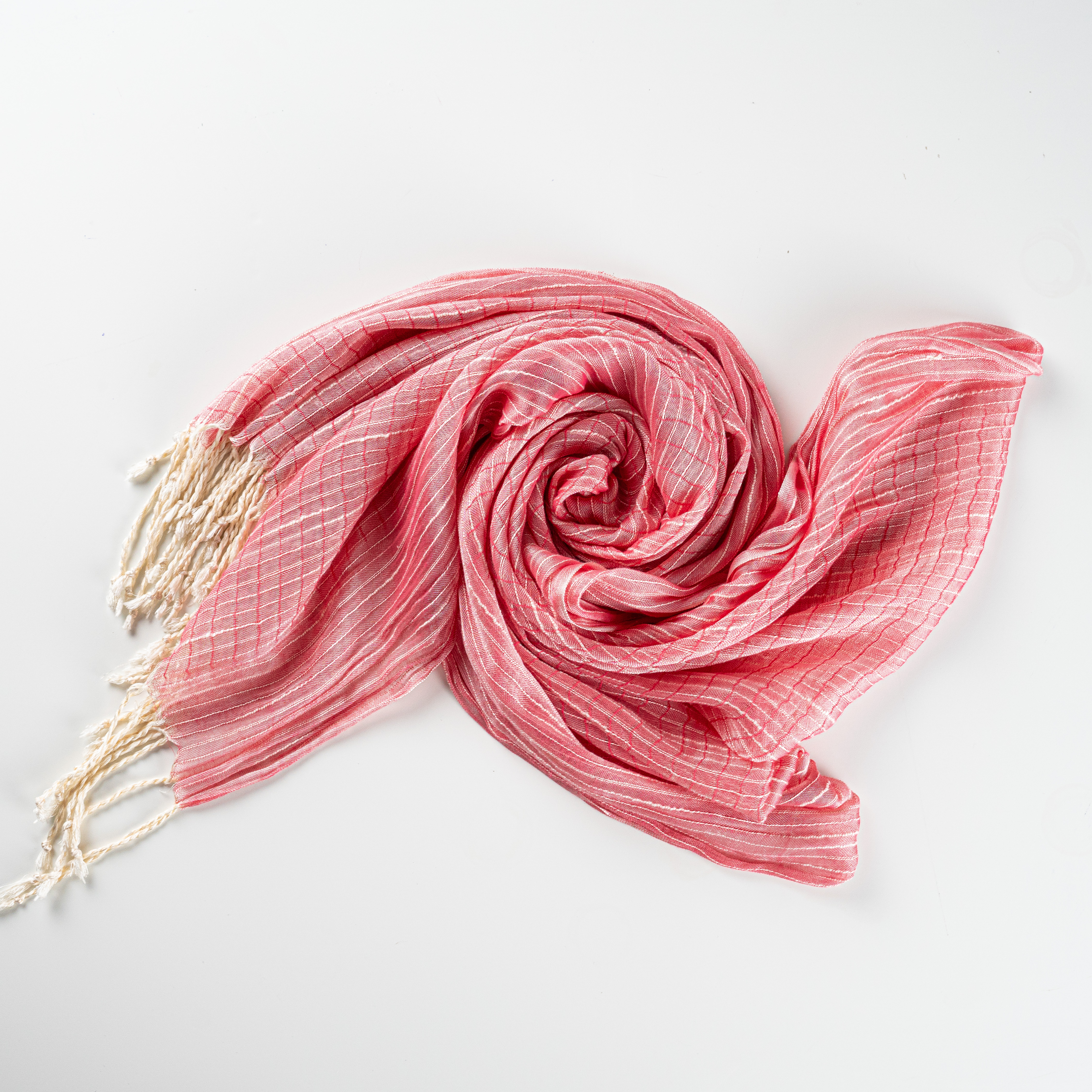 Bu şalın en göze çarpan özelliği, el dokuması ipek kumaşıdır. İpeğin pürüzsüz ve yumuşak dokusu, geniş bir doku yelpazesi ile birleşir. Zarif bir örgü tekniği kullanılarak dokunan pembe şal, hem hafif hem de dayanıklı bir yapıya sahiptir. Aynı zamanda nefes alabilen ipek kumaş, sıcak ve soğuk havalarda dahi konforlu bir kullanım sağlar.