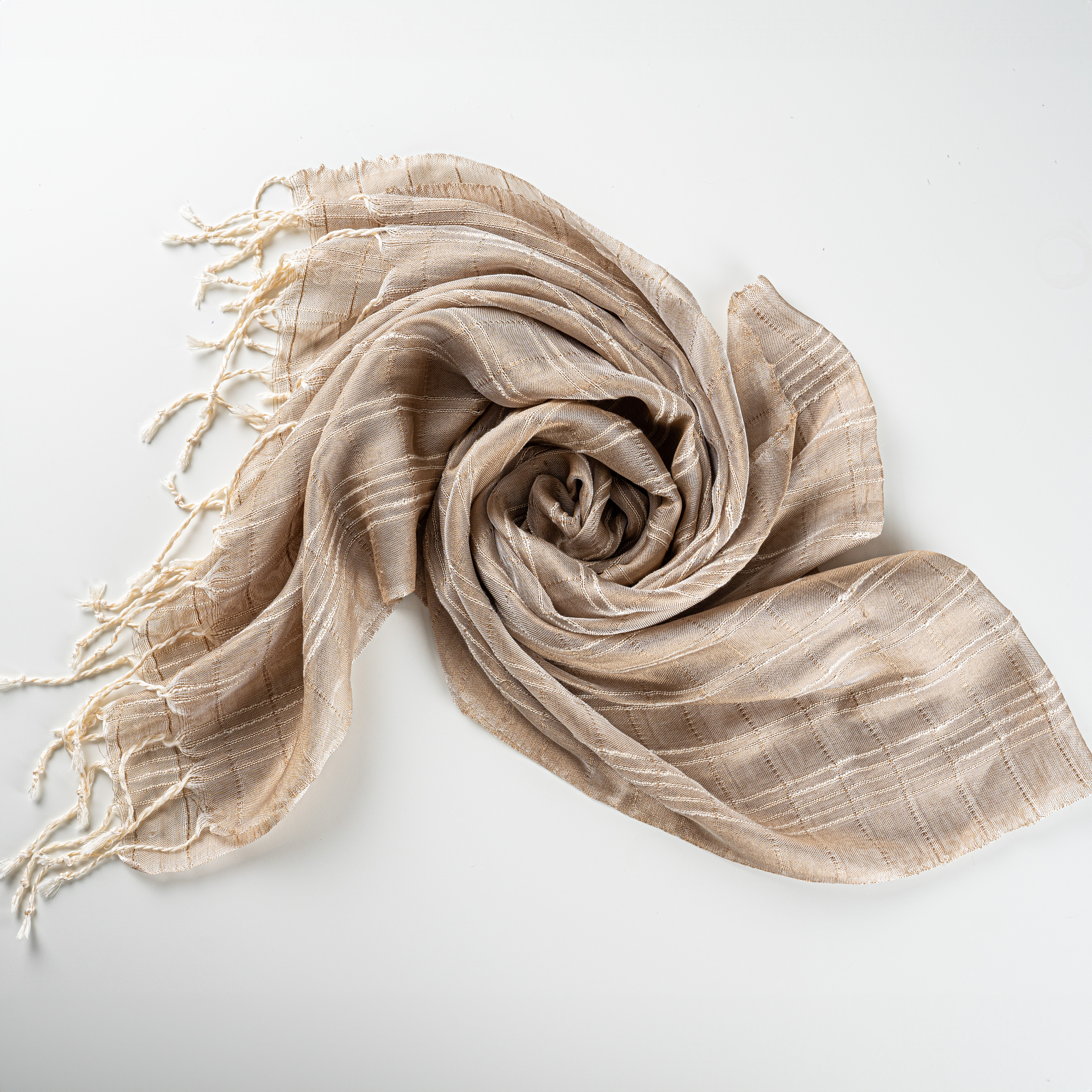 Hatay’ın yüzyıllardır süregelen el dokuma geleneğini modern bir zarafetle buluşturan bu %100 ipek şal, şıklığınızı en üst düzeye taşımak için tasarlandı. El tezgahlarında özenle dokunan ve kum beji renginin zarafetini yansıtan bu şal, ipeğin doğal yumuşaklığı ve hafifliği sayesinde cildinize nazikçe dokunur.